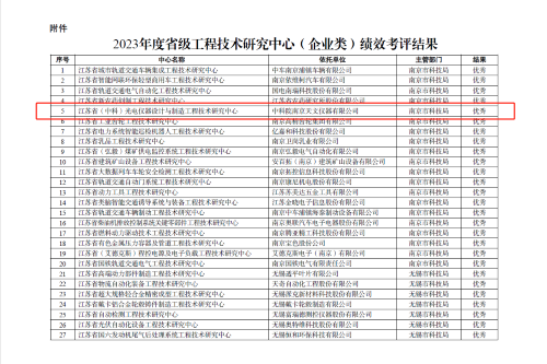 江蘇省工程技術(shù)研究中心是我省企業(yè)研發(fā)機(jī)構(gòu)建設(shè)的重要組成部分,為促進(jìn)工程中心的良性發(fā)展、獎(jiǎng)優(yōu)罰劣,2023年度省科技廳委托各設(shè)區(qū)市科技局對(duì)裝備制造、現(xiàn)代農(nóng)業(yè)領(lǐng)域1243家建設(shè)期滿的工程中心開展績(jī)效考評(píng)。6月9日,省科學(xué)技術(shù)廳公布了2023年度省級(jí)工程技術(shù)研究中心績(jī)效考評(píng)結(jié)果。我公司的“江蘇省(中科)光電儀器設(shè)計(jì)與制造工程技術(shù)研究中心”順利通過此次績(jī)效考評(píng),考評(píng)結(jié)果為“優(yōu)秀”,位居南京市第五名。