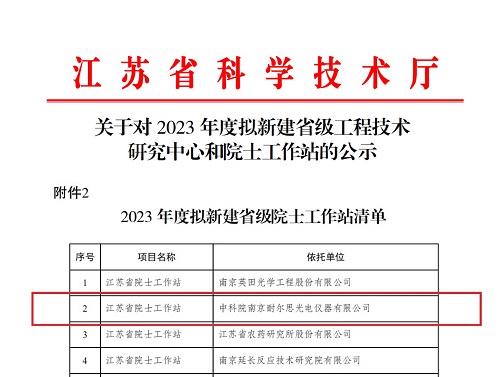 近日,江蘇省科技廳公示了2023年度擬新建的省級院士工作站名單,全省共18家,我公司的全資子公司“中科院南京耐爾思光電儀器有限公司”申報的崔向群院士工作站成功入選。