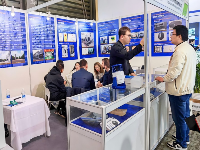 展會期間,公司與國內外研究所、高校及產業鏈上下游企業進行了多場專題技術交流。公司技術團隊分享了在光學系統設計、超精密光學元件制造等領域的最新研究成果,并結合實際案例,詳細介紹了如何將理論技術轉化為實際應用。展會嘉賓對公司在輕量化光學鏡面、大口徑光學系統集成等方面的技術突破給予了高度評價,并就未來技術合作的可能性進行了深入探討。